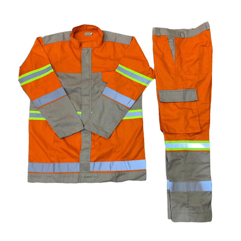 C’est une combinaison ignifuge avec un 100% coton tissu poids de 270gsm, ce qui le rend idéal pour les climats chauds. Répondant à toutes les normes internationales requises, les caractéristiques comprennent Hi-Vis bandes sur les épaules