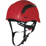 Casque de chantier ventilé, en ABS. Style casque de montagne : sans visière pour une meilleure vision verticale. Très peu d’encombrement. Léger. Coiffe polyamide : 3 bandeaux textiles avec 8 points de fixation. Basane thermoformée. Système de serrage ROTOR ajustable : tour de tête de 53 à 63 cm. Vendu avec jugulaire 3 points de fixation.